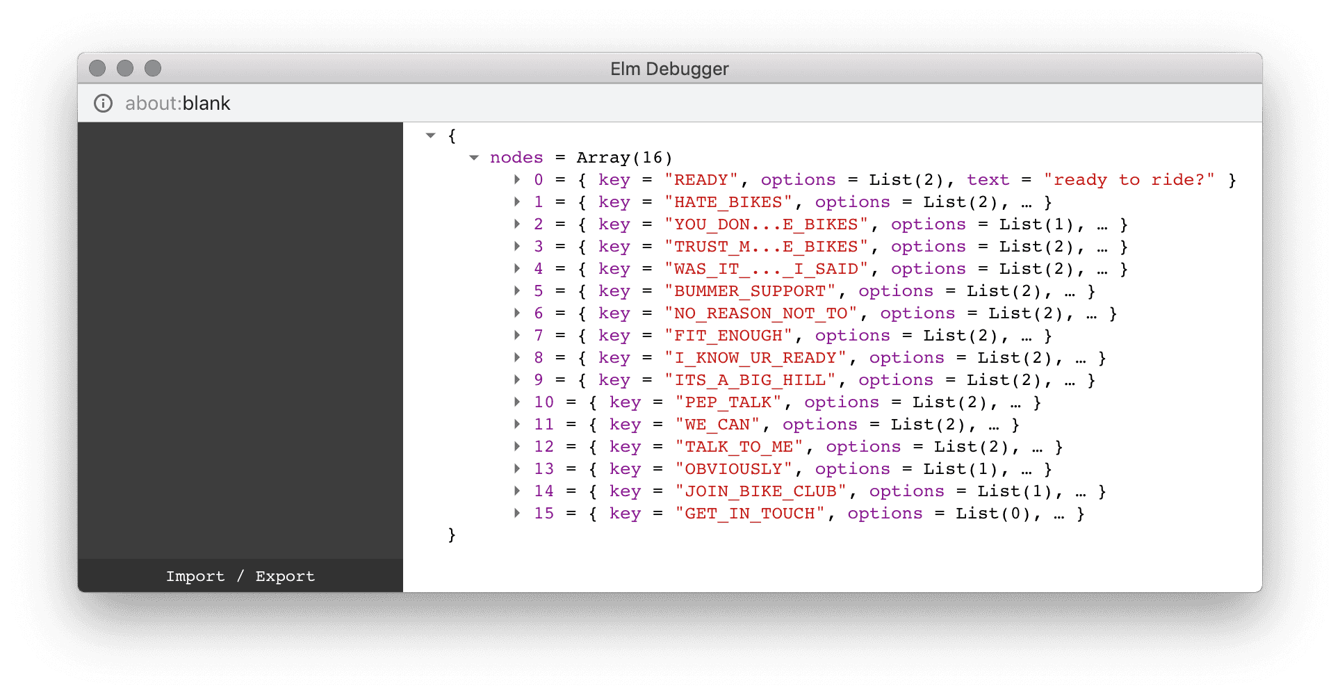 }not too bad, right? it feels like a bit much at first, but we did a bit of extra legwork to make sure that the js -> elm interop went swimmingly. a takeaway that is not immediately apparent in the above code is that when flags are passed, they are typechecked at runtime as they are coerced into elm types!