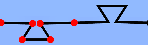 Our base shape is a line for a hexagon. If we permit editing of the entire line and repeat the line for the five remaining edges, it wouldn't tessellate--sides would overlap! For example, let us add two new points between the first and last point on the bottom edge, pull both new points below the previous straight horizontal edge, then repeat the path to complete the six-side geometry. After trying to tessellate, we get: